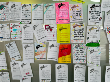 This term, our students and staff were asked to add to our ‘Dis’ Wall. Our Dis  Wall displays the many things that we appreciate and give thanks for. ‘Dis’ comes from The Resilience Project https://www.youtube.com/watch?v=4J93pi0Hg_s which talks about a child called Stanzin who is grateful for absolutely everything in his life and encourages others to be the same.